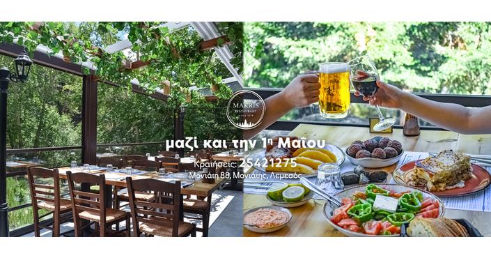 Το Μεσημέρι της Αργίας της 1ης Μαΐου το εστιατόριο θα σερβίρει το «Κυριακάτικο Μενού», όπως κάθε Κυριακή και επίσημη αργία, βασισμένο σε καθαρά παραδοσιακές γεύσεις, με κρέατα στο κάρβουνο, μεζέ, σούβλες, κοντοσούβλι, μακαρόνια του Φούρνου (μακαρόνια της Λένιας), κουπέπια, συκωτάκια κατσαρόλας και κάρβουνο, πατάτες φούρνου, και πολλά ακόμα που θα ξυπνήσουν αναμνήσεις!