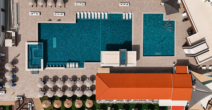 Οι πλήρως ανακαινισμένες πισίνες του ξενοδοχείου, όλες θερμαινόμενες (από 24 Μαρτίου - 31 Μαΐου, 15 Οκτωβρίου - 15 Νοεμβρίου), δίνουν την δυνατότητα να απολαμβάνεται από την ζεστασιά της πισίνας το υπέροχο μπλε φόντο της θάλασσα και το υπέροχο Μεσογειακό τοπίο), πλήρως προσβάσιμες από ενήλικες και παιδιά (εξαιρείται η πισίνα των βρεφών).